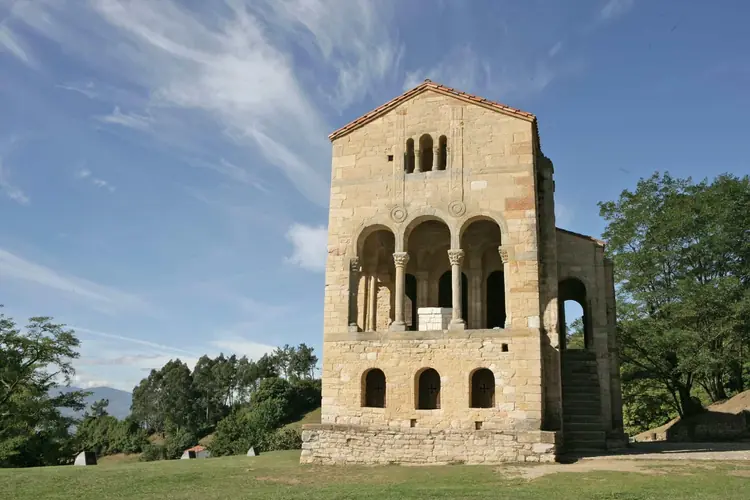 Palacio de Santa María del Naranco. Santa María del Naranco es un antiguo palacio situado a cuatro kilómetros de Oviedo, sobre la ladera sur del Monte Naranco. Originalmente no se proyectó como iglesia, sino que fue el Aula Regia del c ...